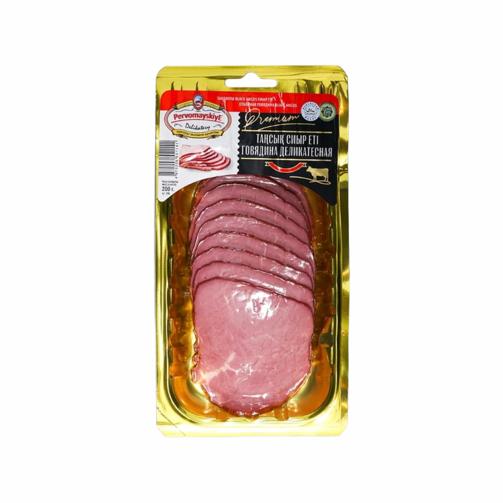 Нарезка ПЕРВОМАЙСКИЕ ДЕЛИКАТЕСЫ Говядина деликатесная в/с в/к 0,2кг в/у