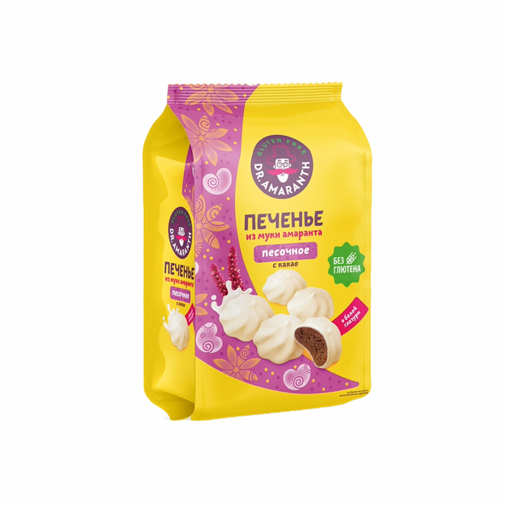 Печенье DR AMARANTH Песочное с какао в белой глазури 210г