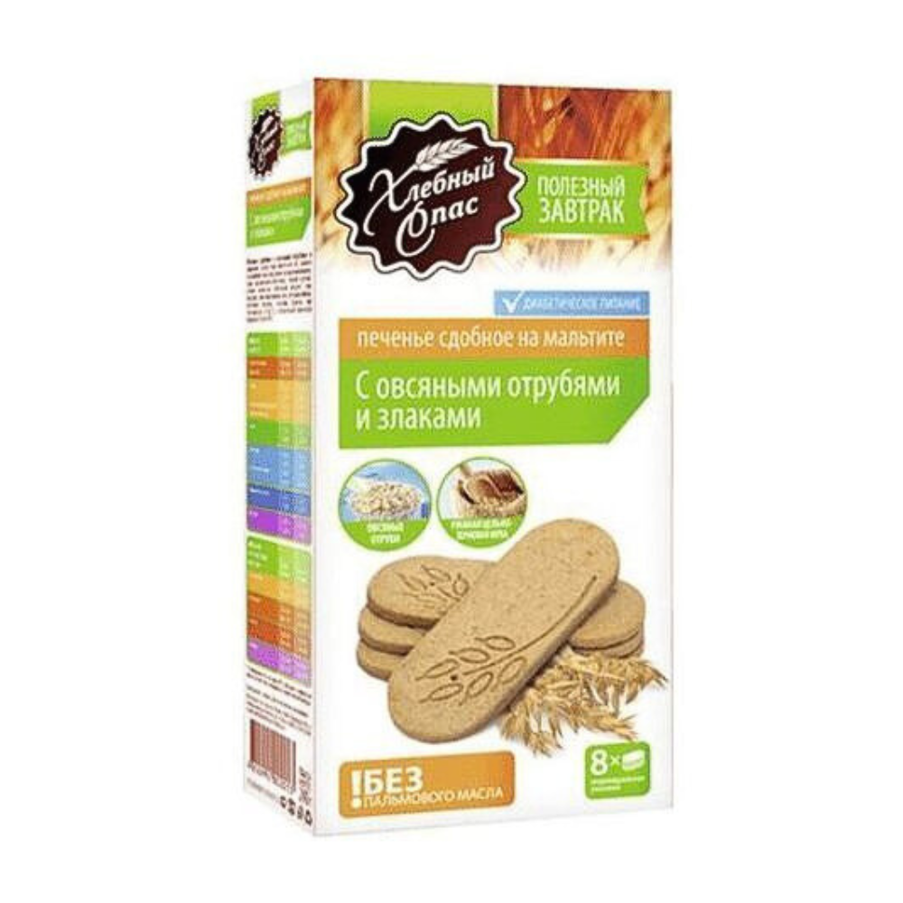 —Печенье ХЛЕБНЫЙ СПАС С овсяными отрубями и злаками Сдобное на мальтите 240г