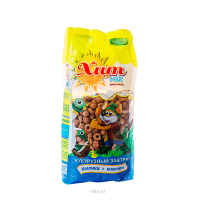 Состав: зерновые продукты [крупа кукурузная, пшеничная], сахар, какао-порошок, глюкоза, соль, кальция карбонат, ароматизаторы, витамин С (аскорбиновая кислота). Продукт содержит (аллергены) глютен, сульфиты.