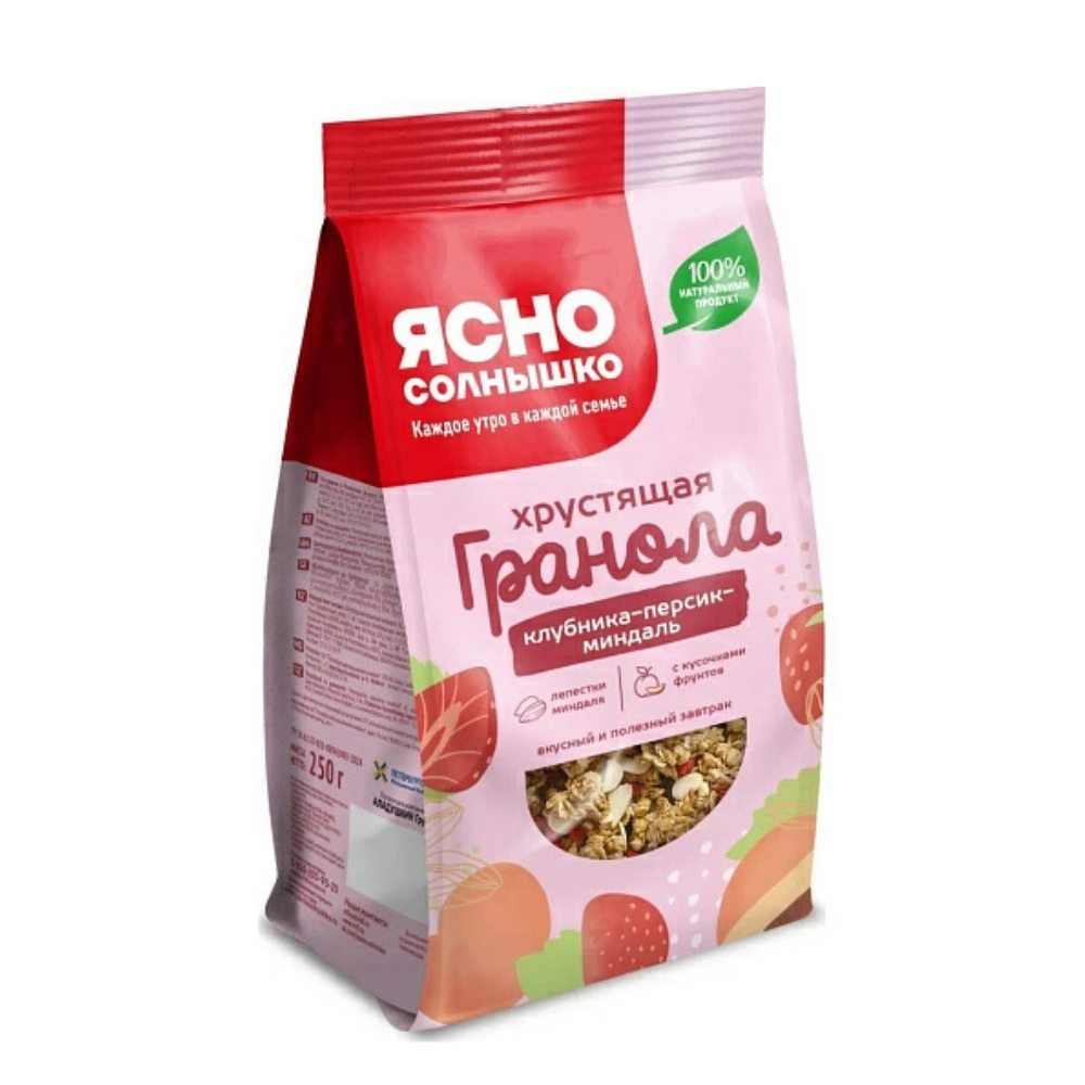 Гранола ЯСНО СОЛНЫШКО С клубникой персиком и миндалем 250г