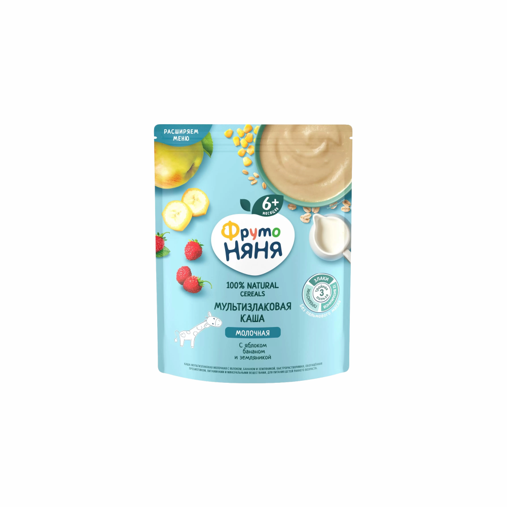 —Каша ФРУТО НЯНЯ Молочная Мультизлаковая с яблоком бананом и земляникой 6 мес+ 200г