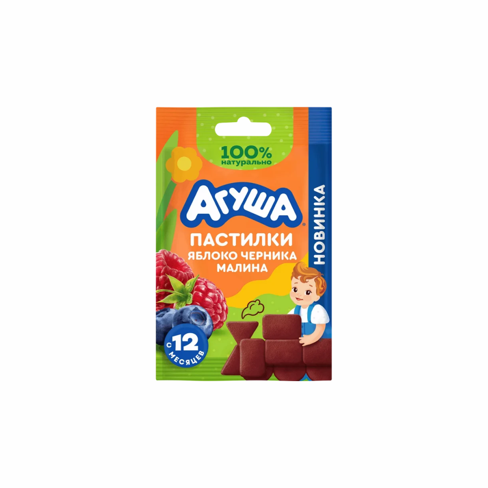 —Пастила АГУША Фруктовая Яблоко черника и малина 12г
