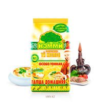 "Лапша домашняя" - полуфабрикат, используемый для приготовления супов из лапши, в том числе казахского национального блюда - "Кеспе". Ширина нарезки лапши чуть больше "суповой", что позволяет почувствовать вкус по-настоящему домашнего блюда.