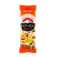 Пшеничная лапша Somen, длинная, очень ровная и тонкая, в сыром виде напоминает натянутые и застывшие белые нити. Подается отварной, тушеной или пассерованной с маслом и соевым соусом, обычно в горячем виде. Используется как гарнир к овощным или мясным салатам и в разнообразных горячих супах.