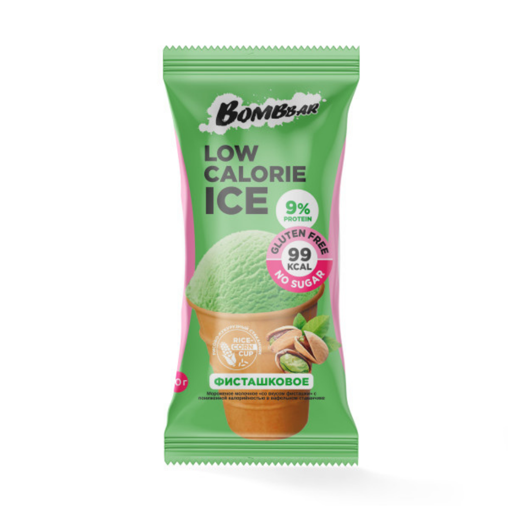 —Мороженое BOMBBAR Молочное низкокалорийное Со вкусом фисташки 80г