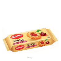Состав: мука пшеничная, вода, сахар, маргарин, джем вишня, яблочное пюре, яйцо, молоко, разрыхлитель, соль, аромат. сливки, ванилин.