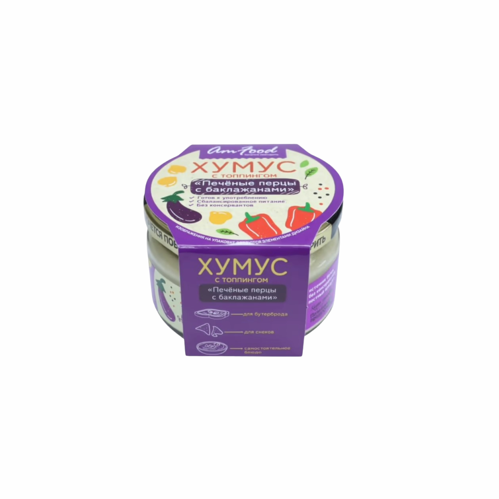 Закуска ТАЙНЫ ВОСТОКА Хумус с топпингом Печеные перцы с баклажанами 200г с/б