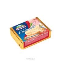 Сыр плавленный нежный с ветчиной. Жирность не менее 35%. Состав: сыр твердых сортов, масло сливочное, молоко сухое обезжиренное, сыворотка молочная сухая, ветчина, ароматизатор ветчины идентичный натуральному, ароматизатор дыма идентичный натуральному, регуляторы кислотности, эмульгатор, стабилизатор, соль пищевая, вода питьевая. Энергетическая ценность: 193ккал. Хранить при Т от 2"C до 8"C. Срок годности: 6 месяцев. Производитель: ООО Хохланд Руссланд, Россия.