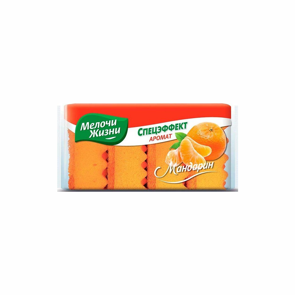 —Губки МЕЛОЧИ ЖИЗНИ Для посуды С ароматом Мандарина 4шт м/у