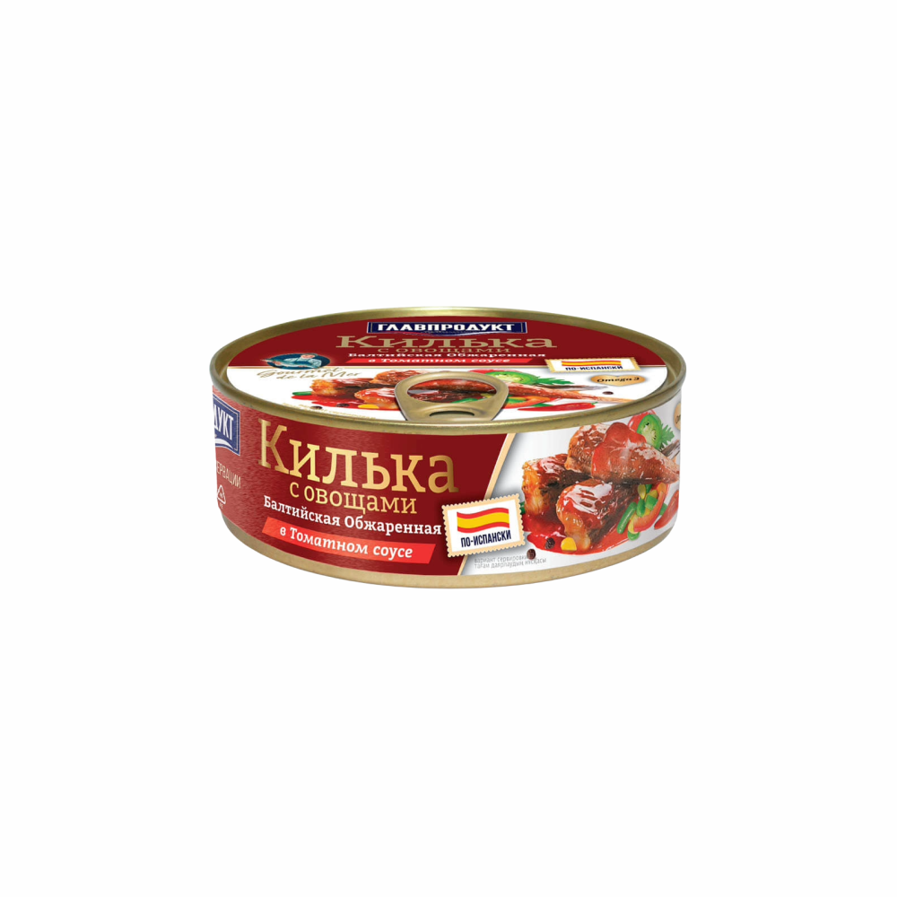 —Килька ГЛАВПРОДУКТ Балтийская обжаренная в томатном соусе с овощами по Испански 230г ж/б