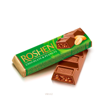 Состав: молочный шоколад 50% [сахар, какао-масло, какао тертое, молоко сухое обезжиренное, молоко сухое цельное, сыворотка молочная сухая, жир молочный, эмульгаторы (соевый лецитин, Е476), ароматизатор ванилин]: минимальное содержание какао-продуктов – 29%; сахар, жиры растительные (пальмовое, пальмоядровое масла), какао-порошок с пониженным содержанием жира, ядра бобов арахиса жареные дробленые 7,5% (в начинке), молоко сухое обезжиренное, шарики рисовые (мука рисовая, крупа манная, сахар, масло кукурузное, соль), ядра бобов арахиса жареные тертые 3,6 % (в начинке), эмульгаторы соевый лецитин, ароматизатор ванилин. Может содержать глютен (ячменный), яичные продукты, кунжут, фундук, миндаль.