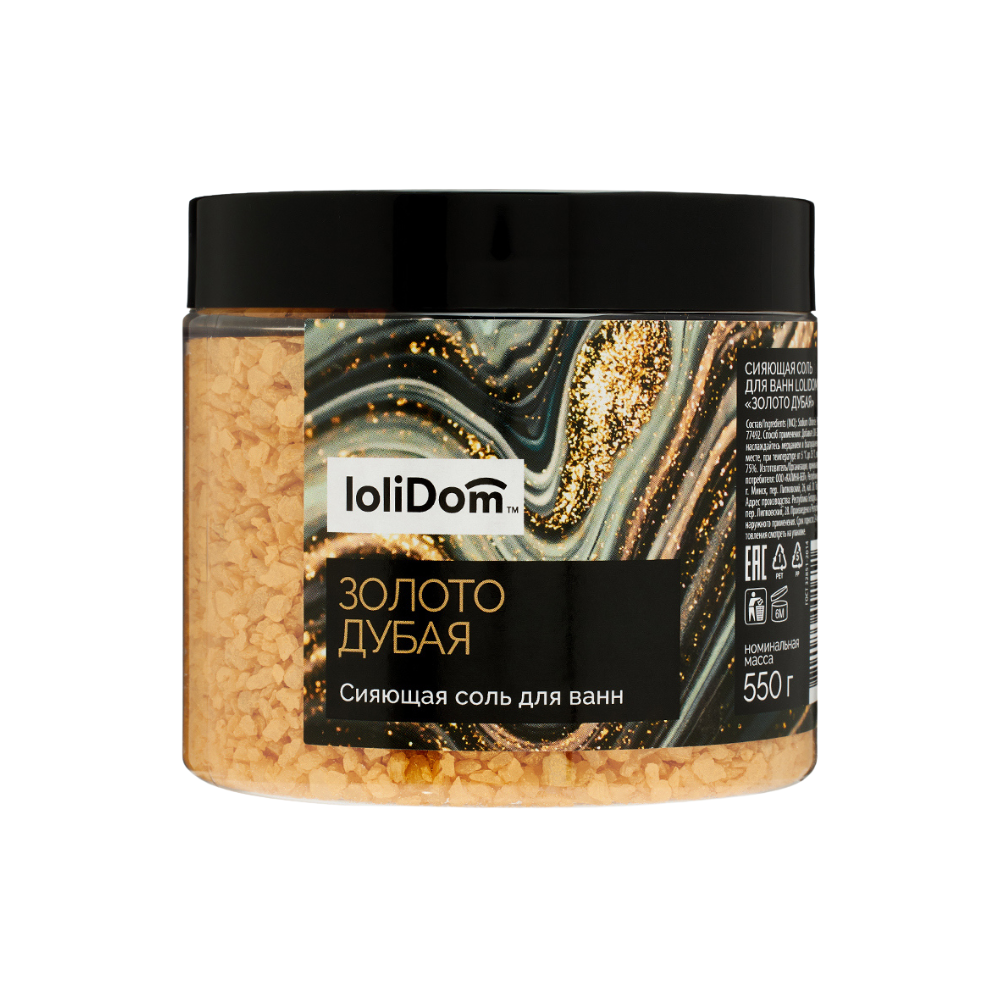Соль LOLIDOM Для ванн сияющая Золото Дубая 550г п/у