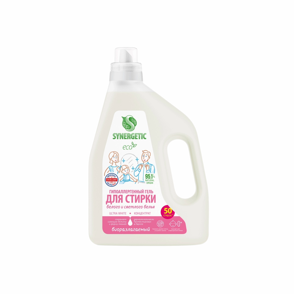 —Гель SYNERGETIC Для стирки Ultra White 1,5л п/у